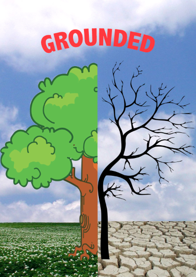 first idea about word "Grounded" is ground and wood.The tree and the ground is Closely connected , only to make the land fertile trees grow tall, on the contrary, if the land is destroyed, the tree will die.